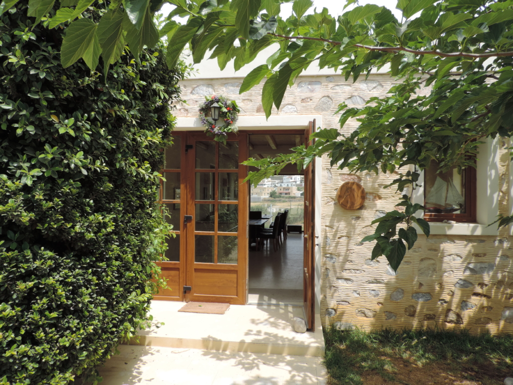 Additionally, the property includes a traditional Cycladic architecture club house, beautifully presented with a bar, a space for preparation of food and beverages, a spacious living room area with a unique fireplace, a luminous and airy property, featuring a stunning view of Hermoupolis, the historic town.